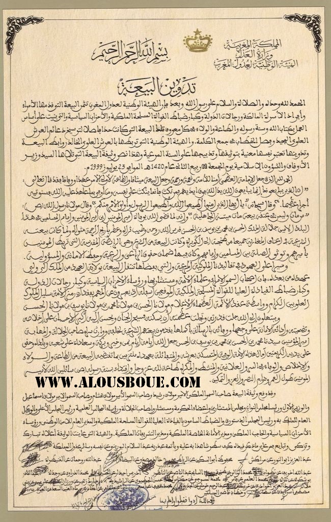 صورة وثيقة بيعة الملك محمد السادس ودور النسب الشريف فيها